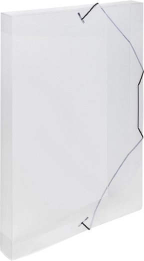 Pratica scatola archivio per documenti formato A4 con elastico di sicurezza e materiale in polipropilene resistente.