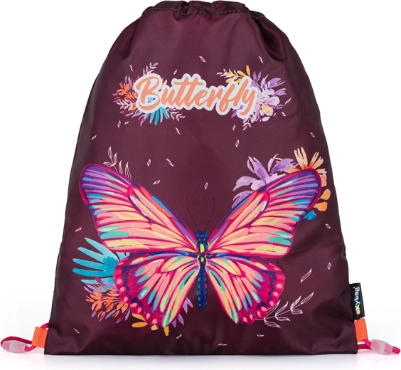 Pratica sacca per ginnastica con motivo a farfalla, ideale per la scuola e le attività extrascolastiche. Offre chiusura con cordini, possibilità di portarla sulla schiena oppure di agganciarla allo zaino scolastico. Materiale leggero e resistente in 100% poliestere, facile da mantenere.
