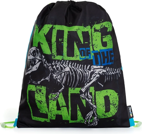 Sacca pratica per ginnastica e pantofole con motivo dinosauro in resistente poliestere. Chiusura a coulisse per una chiusura rapida e sicura, si può portare sulla schiena oppure agganciare allo zaino scolastico. Leggera e compatta, ideale per la scuola e le attività extrascolastiche.