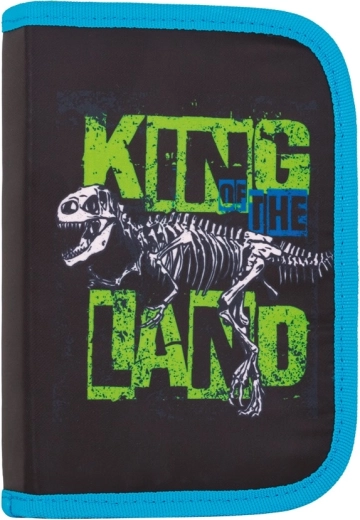 Elegante astuccio scolastico con motivo dinosauri, scelta ideale per gli studenti. È completamente accessoriato con materiali di qualità dei marchi Centropen e STAEDTLER, ha 1 scomparto e 2 alette per un’organizzazione ordinata degli accessori e dimensioni compatte per un trasporto facile.
