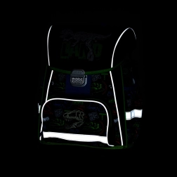 La cartella scolastica della linea Premium è anatomica e garantisce il corretto posizionamento sulla schiena. Il dorso rinforzato e l’intelaiatura interna mantengono la forma stabile dello zaino. L’imbottitura è in materiale piacevole e traspirante; gli spallacci larghi e morbidi sono progettati per aderire perfettamente e distribuire uniformemente il peso sulle spalle del bambino. La cartella è composta da un unico scomparto capiente, in cui trovano comodamente posto tutti i materiali scolastici per i bambini della 1a e 2a classe. Il fondo dello zaino è realizzato in materiale rigido, proteggendo il contenuto da rovesciamenti e fuoriuscite. La chiusura è dotata di fibbia di sicurezza. La taschina frontale è pensata per la merenda; non mancano numerosi elementi riflettenti che rendono la cartella più visibile. Volume: 28 l. Portata: 8 kg.