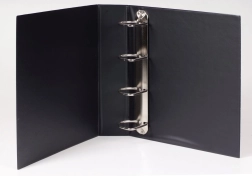 Raccoglitore formato A4 con tasca trasparente sul lato anteriore e sul dorso. Dotato di un meccanismo a 4 anelli con forma di anello "D".