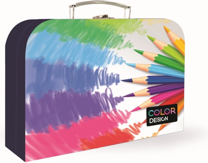 Pratica valigetta laminata con motivo di matite per la scuola e il tempo libero, ideale per materiali artistici e quaderni in formato A4. Superficie laminata resistente, chiusura metallica sicura e rivetti in metallo robusti per una lunga durata. Dimensioni compatte 340 × 230 × 100 mm e peso 0,495 kg per un trasporto agevole.