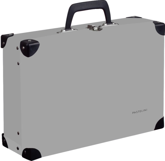 Pratica e stilosa valigetta PASTELINI in colore grigio, ideale per il trasporto e la conservazione quotidiana degli oggetti. Grazie al resistente laminato, al chiusino metallico, alla maniglia in plastica e ai rinforzi angolari, offre una protezione affidabile per giocattoli, materiale artistico o forniture scolastiche.