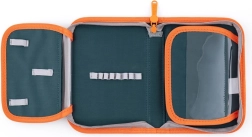 Astuccio scolastico a un solo scomparto con 2 alette, vuoto, contiene 25 passanti elastici per fissare il materiale da scrittura. Sulle alette interne ci sono pellicole trasparenti per l’orario scolastico.