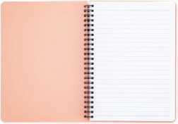 Questo blocco ad anelli in delicata tonalità pastello albicocca con doppia spirale è ideale per lavoro, studio e attività creative. Il formato A5 offre spazio sufficiente per i tuoi appunti e le tue idee.