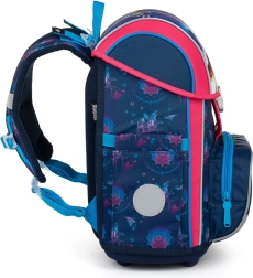 La pratica struttura offre un ampio scomparto unico per libri e quaderni, una taschina frontale per la merenda e un fondo rigido che protegge il contenuto da ribaltamenti e rovesciamenti. La sicurezza è aumentata da elementi riflettenti ben visibili e da una chiusura affidabile con fibbia di sicurezza.