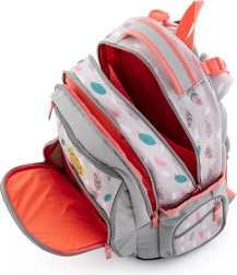 Il pratico fondo rigido protegge dallo sporco e da indesiderate fuoriuscite del contenuto. Lo zaino offre un’ampia quantità di tasche, così chiavi e piccoli oggetti saranno sempre a portata di mano. Gli elementi riflettenti aumentano la visibilità dei bambini nel tragitto da e per la scuola.