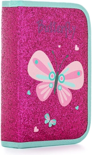 Astuccio scolastico a un piano con effetto paillettes, motivo farfalla, 2 alette