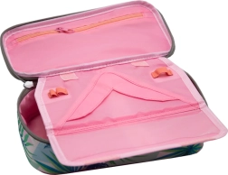 Questo astuccio scolastico è dotato di cerniere robuste e una tasca con chiusura a zip che garantisce la sicura conservazione di tutti i vostri materiali di scrittura. Pratica tasca per il righello e un'apposita patta con sei passanti per articoli di cancelleria offrono una perfetta organizzazione.
