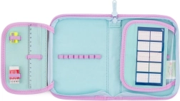 Astuccio scolastico a un solo scomparto con 2 alette, vuoto, dotato di 25 passanti in gomma per fissare gli strumenti di scrittura. Sulle alette interne sono presenti pellicole trasparenti per l’orario delle lezioni.