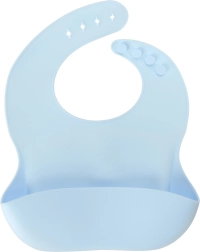 Bavaglino in morbido silicone, con chiusura regolabile e tasca profonda, cattura in modo affidabile briciole e liquidi e protegge i vestiti a ogni pasto.