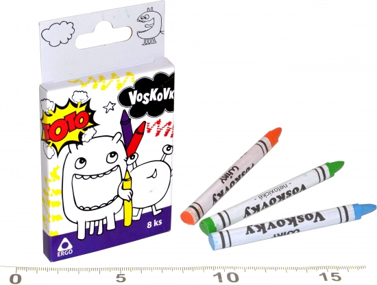 Il set include otto pastelli di diversi colori, che permettono di creare immagini vivaci e colorate. I pastelli sono confezionati in un contenitore compatto, ideale per il trasporto e la conservazione.