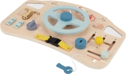 La tavola aiuta i bambini a migliorare le loro abilità motorie fini attraverso elementi interattivi come volante, leve e pulsanti.