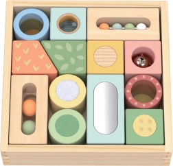 Scopri la magia di questi cubetti sensoriali progettati per sviluppare la curiosità e l'immaginazione dei bambini. Ogni cubetto è realizzato in pregiato legno certificato FSC® assicurando la responsabilità ecologica del prodotto. Grazie alla varietà di materiali e texture, i bambini imparano a riconoscere e distinguere diversi elementi nel loro ambiente.