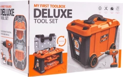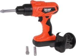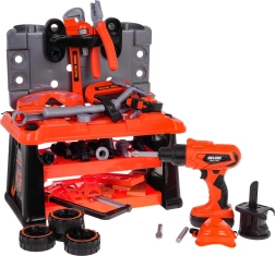 Set di attrezzi 2 in 1 ben equipaggiato per piccoli fai-da-te dai 3 anni. Dal set si può montare un banco da lavoro e, una volta finito di giocare, trasformarlo in una valigetta per attrezzi inclusa nel set. Il set comprende 65 elementi, come componenti da officina, utensili, sega, cacciaviti, trapano/avvitatore a batteria, molte viti, ecc. L’avvitatore è alimentato da 2 batterie AA da 1,5 V, non incluse. L’avvitatore funziona come un vero utensile: avvita, svita, ha anche una batteria rimovibile, 3 inserti intercambiabili e una punta per sega. |