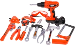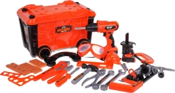 - valigetta-officina, .avvitatore, .- bussola avvitatrice, .- 3 inserti intercambiabili, .- trapano con lama elettrica, - martello, - cacciavite a taglio, .- chiave combinata e chiave ad anello, .- chiave, - chiave, - occhiali protettivi, .- maschera protettiva, .- misurino, - seghetto per legno, .- pinze, - sega a mano, .- morsetto. - metro, - 4 ruote per la valigetta, .- 3 componenti avvitabili, .- viti, - bulloni, .- dadi. |