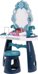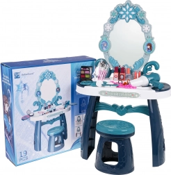 Toeletta interattiva con accessori e sgabello, per bambini dai 3 anni. Il set è realizzato in plastica della massima qualità in colori vivaci. Oltre alla bellissima toeletta con piano e specchio decorato, per le piccole principesse è incluso anche uno sgabello confortevole. La confezione comprende un phon e un ricco set di accessori per il trucco. La toeletta è alimentata da 3 batterie AA 1,5 V (non incluse), il phon da 1 batteria AA 1,5 V (non inclusa). . . Funzioni del set:
