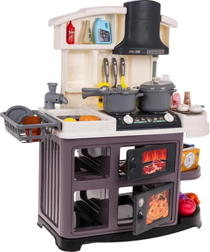 La cucina offre forno apribile e grill, tanti scomparti per gli alimenti e 52 pezzi di accessori tra cui pentole, padelle, utensili e alimenti finti. Grazie alla struttura stabile e ai colori vivaci, è una scelta ideale per il gioco quotidiano e lo sviluppo della fantasia.