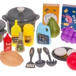 Con 52 accessori tra cui pentole, padelle, utensili, spezie e alimenti finti, oltre a ripiani e ganci, i bambini hanno tutto a portata di mano.