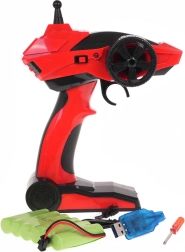 Trasmettitore ergonomico 2,4 GHz, batteria 700 mAh 7,2 V e caricatore USB in confezione: basta inserire 2× AA nel radiocomando e partire.