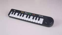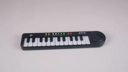 Compatta tastiera per bambini dai 3 anni in su che offre un apprendimento divertente e i primi passi nel mondo della musica. Dispone di brani demo, ritmi e timbri, regolazione del volume e del tempo e possibilità di collegare un microfono. Grazie all’alimentazione via USB o a batterie è ideale a casa e in viaggio.