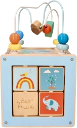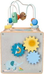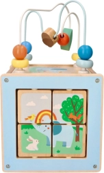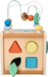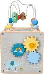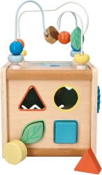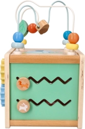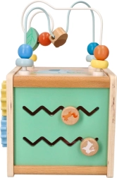 Scopri un giocattolo divertente ed educativo per i più piccoli: cubo attività in legno con in alto un percorso a perline, inserimento di forme, ingranaggi e altre attività. Sostiene lo sviluppo della motricità fine, del pensiero logico e della coordinazione occhio–mano. Ideale dai 12 mesi.