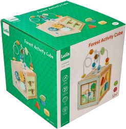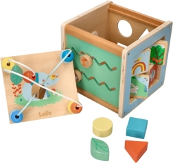 Questo cubo attività in legno di alta qualità del marchio LELIN offre ai bambini una varietà di attività su ogni lato. Perline colorate su fili, labirinti, inserimento di forme e ingranaggi catturano l’attenzione e sviluppano naturalmente abilità, creatività e pazienza.