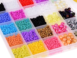 Questo set ricco di accessori è ideale per realizzare braccialetti, collane, ciondoli e altri accessori. Grazie all’ampia gamma di sfumature di blu, turchese, viola, rosa, verde e bianco e alle diverse forme di perline, creerai accessori originali per ogni occasione. L’organizer con scomparti mantiene tutto in ordine: le perline non si mescolano e il lavoro è rapido e comodo.