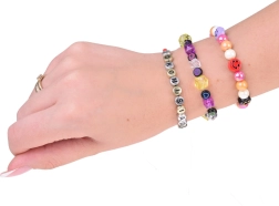 Un’ampia tavolozza di tonalità e forme, inclusi charm con lettere, ti permette di creare braccialetti, collane e ciondoli unici, proprio come li immagini.