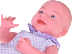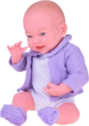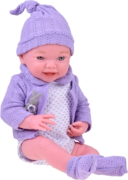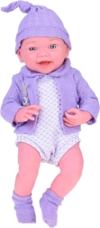 Adorabile bambola bebè alta 40 cm che conquisterà ogni bambino con l’aspetto realistico e il tocco piacevole. Ha arti mobili, un viso dettagliato ed è vestita con un golfino viola con cuffietta, body e calzini morbidi. Perfetta per il gioco di cura, lo sviluppo dell’empatia e della fantasia.