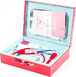 La valigetta è facilmente trasportabile e ogni cosa ha il suo posto all'interno, garantendo una riposizione rapida e semplice. I bambini possono portare la propria attrezzatura medica ovunque e giocare a fare i piccoli dottori in qualsiasi luogo e in qualsiasi momento.