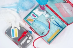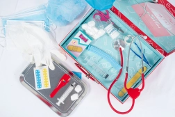 La valigetta medica contiene 27 pezzi di attrezzature sanitarie per giochi di ruolo realistici.