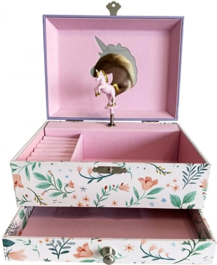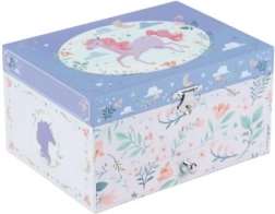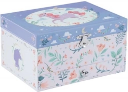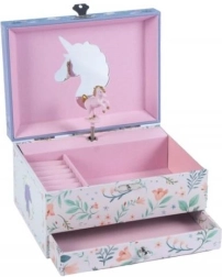 La scatola portagioie con carillon è un regalo perfetto per bambini che amano gli accessori magici e originali. Quando si apre la scatola, si diffonde una melodia e un bellissimo unicorno inizia a girare.