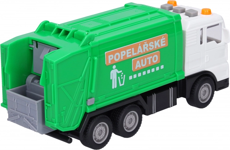 Camion dei rifiuti con effetti sonori e luminosi realistici. Dimensioni 17 cm. Regalo ideale per piccoli appassionati.