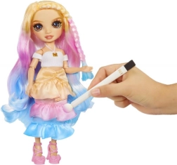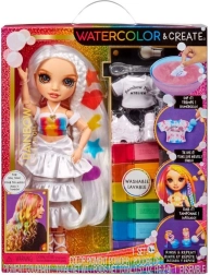 La bambola RAINBOW HIGH watercolor sprigiona creatività infinita. Grazie all’outfit bianco e ai capelli chiari funge da perfetta “tela” su cui provare effetti ombré, tie-dye e delicate sfumature. Basta versare le polveri nell’acqua e, con la spugnetta o per immersione, creare motivi originali. Fatto? Sciacqua il colore con acqua e ricomincia.
