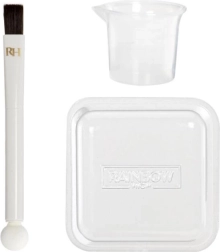 - bambola con outfit bianco, 6 polveri arcobaleno lavabili (rosso, arancione, giallo, verde, blu, viola), spugnetta applicatrice, elastici