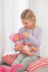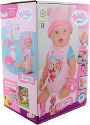 Emma è una dolce bambola BABY born con funzioni realistiche che i bambini adorano. Beve acqua dal biberon, ruotando il ciuccio apre e chiude gli occhi, sa versare lacrime e fare pipì nel pannolino o nel vasino. Grazie alla struttura resistente è adatta anche al bagnetto, così i bambini si divertiranno un mondo sia in vasca sia fuori.