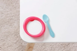 Sul piattino, a contatto con l’acqua, compare il cibo e nel vasino il risultato appare “magicamente”. Un ottimo modo per insegnare i rituali di cura attraverso il gioco.