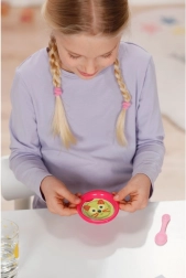 Nella confezione sono inclusi anche il piattino magico, su cui a contatto con l’acqua compare il cibo preferito, e il vasino, dove pipì e cacca appaiono “magicamente” – ideale per esercitare i rituali della cura quotidiana. La ricca dotazione e la possibilità di cambiare i vestitini sviluppano la fantasia, l’empatia e la motricità fine.