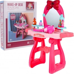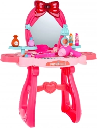 Elegante tavolino da toeletta rosa con grande specchio e iconico fiocco, perfetto per ogni bambino che ama i giochi di imitazione. Nella confezione trovi un ricco set di accessori: dal phon e piastra per capelli fino a rossetti, smalti, anellini e braccialetto. Lo specchio è dotato di induzione intelligente: al movimento si attivano effetti luminosi e melodie.