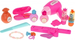 Include phon, piastra, trousse cosmetica, pettine, profumo, smalti, rossetti, anellini, mollettine, braccialetto e adesivi: tutto per un makeover completo.