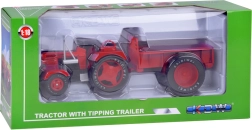 trattore rosso in metallo con rimorchio 1:18 con ruote in gomma