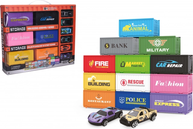 Città dei container offre un gioco per bambini con 6 container, dove ogni container nasconde un'auto. Questo set stimola la creatività e sviluppa l'immaginazione dei bambini.