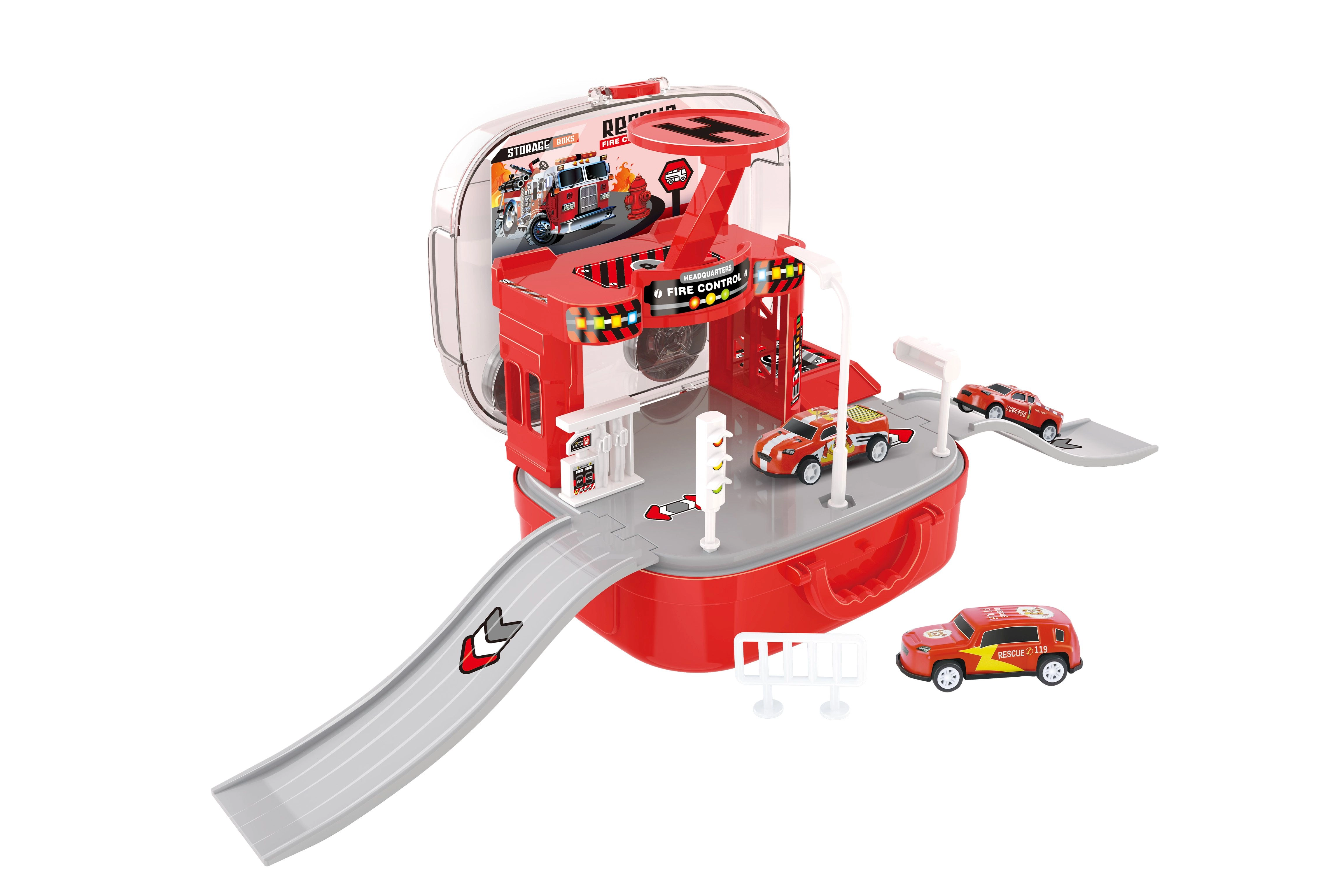Questa ingegnosa stazione dei pompieri in valigetta entusiasmerà i piccoli amanti dei soccorritori. I bambini possono creare i propri interventi, spostare i veicoli tra i piani grazie all’ascensore manuale e far decollare l’elicottero per missioni rapide. Grazie alla pratica valigetta, l’intera stazione si chiude facilmente dopo il gioco e si trasporta ovunque.