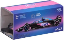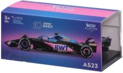 I colori iconici del team blu, rosa e nero, i loghi fedeli degli sponsor BWT, ALPINE e Castrol e le forme aerodinamiche conferiscono a questo modello l’aspetto realistico della vera monoposto Alpine A523 (stagione 2023). In scala 1:43 risalta splendidamente in qualsiasi vetrina.