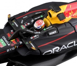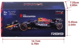 Goditi una replica di alto livello della monoposto campione RED BULL RACING RB19 (2023) nella iconica livrea nero-blu con accenti rossi e gialli. Il modello in scala 1:43 cattura fedelmente le curve aerodinamiche, i dettagli delle ruote e le esatte decalcomanie degli sponsor, incluso Oracle. È inclusa anche la figurina del pilota Max Verstappen nel cockpit.