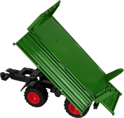 Il rimorchio verde con parti mobili e ruote in gomma consente un facile carico e scarico del materiale, proprio come in una vera fattoria.