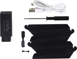 Inclusi cavo USB per la ricarica, rotori di ricambio, cacciavite e manuale – tutto ciò che serve per un avvio rapido.