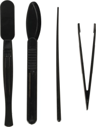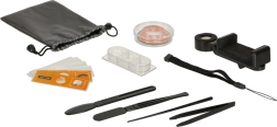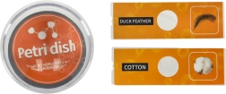Il set comprende due vetrini preparati con campioni (piume di anatra e fibre di cotone) e altri quattro vetrini vuoti per la preparazione di campioni propri. Questo dispositivo consente ai bambini di preparare i propri campioni, il che impegna ulteriormente il loro interesse e abilità. Nella confezione si trovano anche strumenti di base, come pinzette e un bisturi di plastica, per una facile preparazione dei propri campioni.